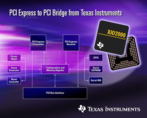 „Texas Instruments“ pranešė pradedanti prekybą „XIO2000“ čipais, kurie atlieka tilto funkciją tarp įrenginių, aprūpintų tradicine „PCI“ sąsaja, ir sąlyginai naujos įrangos, dirbančios jau su „PCI Express“. Pagal gamintojo informaciją, įrenginys pilnai atitinka „PCI Express-to-PCI/PCI-X Bridge“ 1.0 versijos specifikaciją ir leidžia nesijaudinti dėl nesuderinamumo problemų. Papildomai, „XIO2000“ taip pat leidžia naudoti ilgesnes jungtis be kritinio signalo slopinimo, kas išpečia projektuotojų galimybes modeliuoti įvairesnius įrenginių variantus.