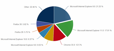 Remiantis statistika, kuri atspindi situaciją šių metų birželio mėnesį, įvairios naršyklės „Internet Explorer“ versijos užima 58,38 % rinkos.
