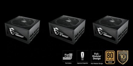 MSI iš viso pasiūlys tris MPG maitinimo blokus: „MPG A650GF“ (650 W), „MPG A750GF“ (750 W) ir „MPG A850GF“ (850 W). Visi maitinimo blokai turės „Gold“ sertifikatą, o gamintojas suteiks net 10 metų garantiją. Su maitinimo blokais gausime ne tik naują 12 pin maitinimo kabelį, bet ir įprastus 8 pin vaizdo plokščių maitinimo laidus.