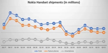 „HMD Global“ valdomas „Nokia“ išmaniųjų telefonų padalinys per trečiąjį metų ketvirtį pardavė 3 mln. įrenginių. Ir nors tai nėra įspūdingi skaičiai, tačiau šios bendrovės pardavimai, lyginant su analogišku periodu pernai, užfiksavo net 37 proc. augimą. 2020 metų trečiojo ketvirčio metu „Nokia“ užfiksavo 2,1 mln. parduotų telefonų rezultatą.
