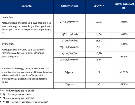 IV variantas: Paslaugų kaina, prilyginta pasirinktam elektros energijos persiuntimo paslaugos tarifui.