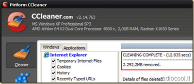 CCleaner“ – nemokama programa šalinanti nenaudojamus (laikinuosius) failus ir taip atlaisvinanti vietą.