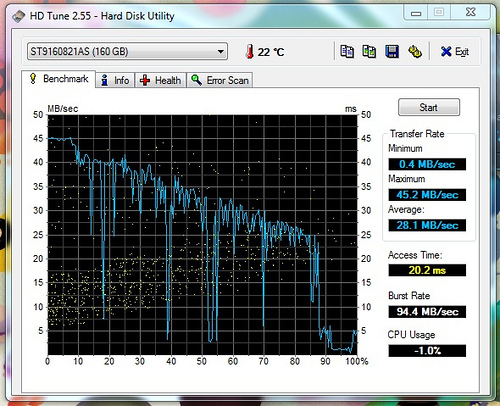 Iš pirmo žvilgsnio, tik 3 kartų minimalaus ir vidutinio greičio pagerėjimas, bet pažiūrėkime atidžiau. Atminties sektorių paieškos laikas susitraukė iki nepastebimo! Jei prieš turėjome 12 ms vidutinį paieškos laiką, tai dabar jis sumažėjo mažiausiai apie šimtą kartų iki <0,1 ms! Nieko nuostabaus, nebereikia sukioti disko, nebereikia gaišti laiko, ieškant sektoriaus pradžios ant jo paviršiaus. Dėl to galima akimirksniu rasti reikiamos bylos pradžią ar vienu metu be pastebimo sulėtėjimo tvarkytis su visa jų krūva.
