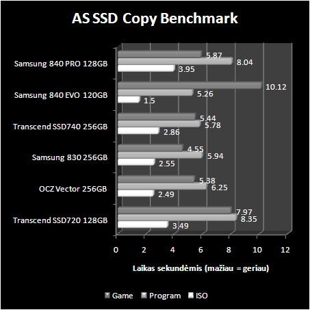 Visuose CDM testuose „840 PRO“ rodo solidžius rezultatus. „840 EVO“ vėl išsiskiria iš konkurentų dėl RAPID režimo.