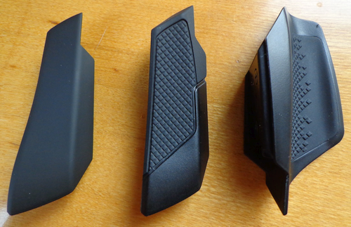 Pelė turi nuimamą ir keičiamą kairįjį šoną. Galima užsidėti trijų tipų šoninę dalį: paprastą, paprastą su papildomais grubliukais ir su nykščio atrama. Nemanau, kad visai tai yra reikalinga – pirmasis ir antrasis šonai tarpusavyje skiriasi labai mažai, na o trečiasis šonas yra pats patogiausias – nemanau, kad bus daug norinčių pasirinkti pirmąjį variantą.