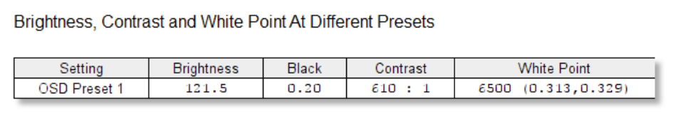 Įdomumo dėlei pamatavome koks spalvų ir balto taško tikslumas yra naudojant gamyklinius nustatymus tik parinkus tinkamą ryškumą. Kaip matome, viskas atrodo tikrai gerai.