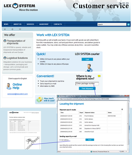 Tarptautinė siuntų gabenimo kompanija „Lex system“ baigė diegti ir išbandė paslaugų teikimo internetu sistemą, leidžiančią verslo klientams keliais mygtukų spustelėjimais išsiųsti krovinius ne tik iš Lietuvos į užsienį ar atvirkščiai, bet ir gabenti juos iš vienos užsienio šalies į kitą aplenkiant Lietuvą. Šiemet „Lex system“ klientams pasiūlė ir siuntų valdymo programą „E@syShip Online“.