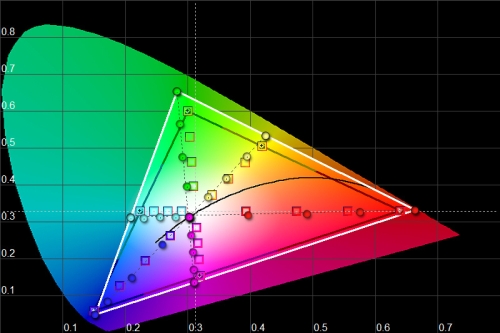 Ekrano nustatymuose įmanoma nustatyti spalvų temperatūrą pagal vartotojo norus. Kaip paaiškėjo, sistema veikia labai gerai ir naudojant parametrus galima pasiekti geriausią spalvų balansą pašalinant perteklinius mėlynus komponentus. Vidutinė pilkos spalvos Delta E klaida sumažėja iki 0,62 – tai galima vadinti puikiu rezultatu.