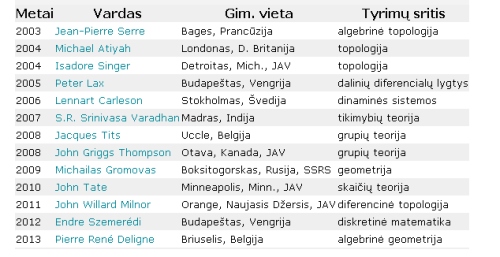 Vadinamoji „matematikos Nobelio“ premija, pavadinta žymaus Norvegijos matematiko H. N. Abelio garbei, teikiama už nuopelnus matematikos srityje mokslininkams iš viso pasaulio.