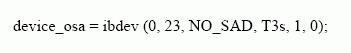 Šioje struktūroje panaudotos keturios funkcijos. Funkcija „ibwrt“ skirta konkrečiai tekstinei komandai (šiuo atveju siunčiama automatinio matavimo komanda „automeas“) siųsti į prietaisą. Pirmasis argumentas „device_osa“ nustato, kad komanda bus adresuojama optiniam spektro analizatoriui, kuriam priskirtas GPIB 23 adresas. Prietaisą atitinkantis kintamasis inicijuojamas tokia eilute: