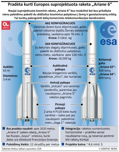 Europos kosmonautikos specialistai viešai pranešė, jog pradėjo kurti naujo dizaino raketą „Ariane 6“. Anot kūrėjų, ši raketa gebės vienu metu į žemą Žemės orbitą pakelti du didžiulius telekomunikacijų palydovus. Tai turėtų palengvinti komercinių telekomunikacijų bendrovių dalią.