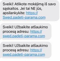 Gyventojai įspėjami neaktyvuoti siunčiamų nuorodų ir neatskleisti savo asmeninių duomenų.