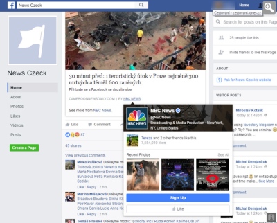 „Facebook“ naudotojai čekai ir slovakai socialiniame tinkle pastebėję pranešimus apie „teroro aktą Prahoje“ ir paspaudę pateiktą nuorodą buvo nukreipiami į sukčiavimo svetainę, kurioje prašoma suvesti „Facebook“ prisijungimo duomenis, kad būtų galima perskaityti visą naujieną. Tačiau ir prisijungus vartotojai atsidurdavo dar kitame fiktyviame „Facebook“ puslapyje.