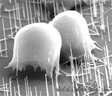 Kalifornijos universiteto Berklyje mokslininkai pasinaudojo padėkliuku, prismaigstytu elektrai laidžių silicio nanolaidų ir pademonstravo, kad ant tokio pagrindo adatėlėmis stimuliuojamos kamieninės žinduolių ląstelės pavirsta plakančiomis širdies ląstelėmis – kardiomicitais.