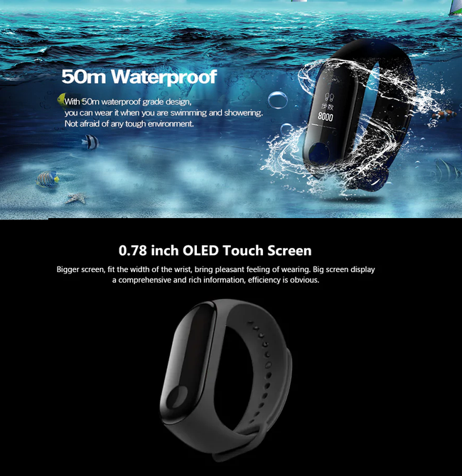 Kai „Mi Band 2“ galėjo pasigirti beveik tobulu IP67 atsparumo dulkėms ir vandeniui standartu, „Mi Band 3“ pirmtakę aplenkė – gavo IP68 ir net laikrodžiams naudojamą 50 metrų reitingą. Tai reiškia, kad su šia apyranke galite drąsiai lįsti po dušu ir plaukioti.