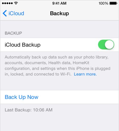 Jei esate įjungę „iCloud Backup“ funkciją, kurią galima rasti Settings > iCloud > Backup, „iCloud“ gali automatiškai kurti įrenginio atsargines kopijas kasdien, tačiau įrenginys turi atitikti šiuos reikalavimus: