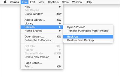 - Palaukite, kol baigsis pirkinių išsaugojimas. Tuomet spauskite File > Devices > Back up. Jei naudojatės „Windows“ ir nematote „File“ parinkties, spauskite „Alt“ mygtuką.
