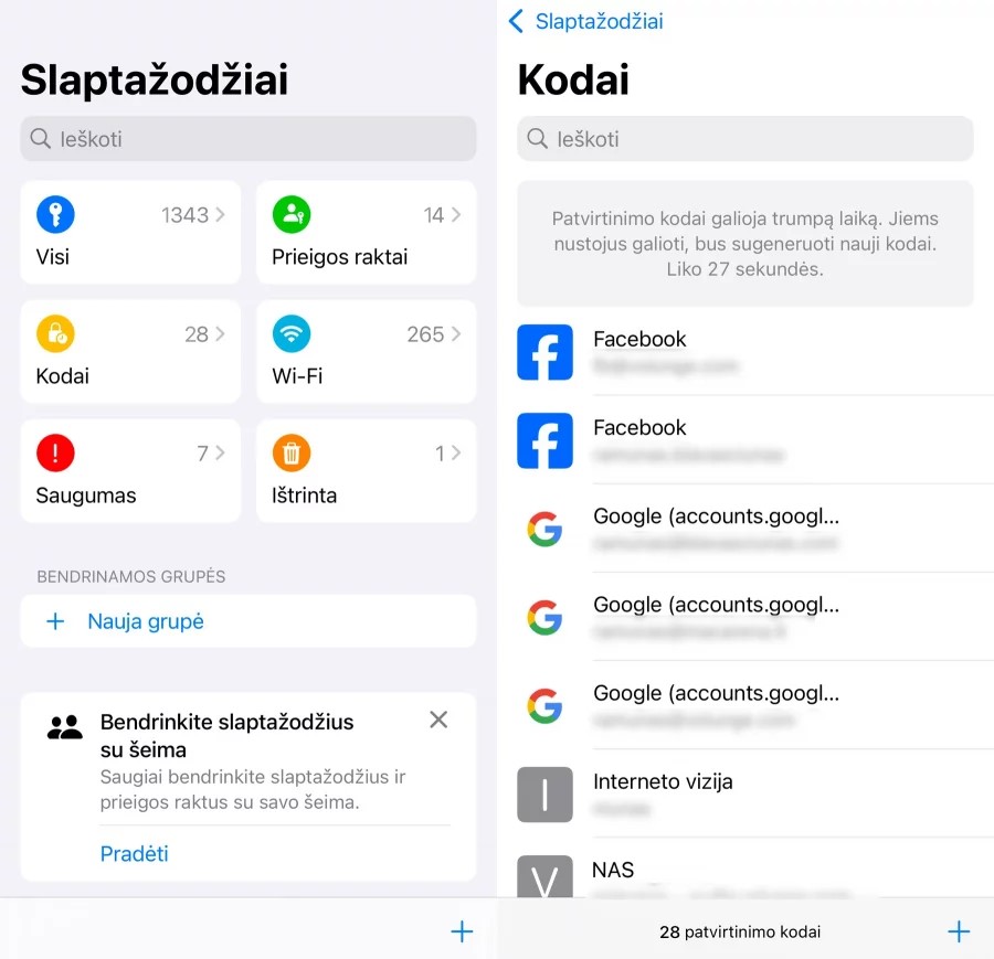 Nauja „Apple“ aplikacija „Slaptažodžiai“ („Passwords“) pakeitusi nepatogų „Keychain Access“ naudojimą „Mac“ kompiuteriuose ir padariusi patogesnę bei paprastesnę prieigą prie slaptažodžių „iPhone“ ir „iPad“, gali būti naudojama ir kaip vienkartinių kodų - 2FA generatorius. Ši aplikacija atsirado neseniai ir yra prieinama visiems „iOS 18“, „iPad 18“ ir „macOS Sequoia“ (macOS 15) naudotojams.