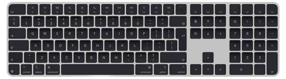 – clear - išvalymo klavišas - kadangi šis klavišas yra klaviatūrose su skaičių bloku – jį reikėtų laikyti tokiu pačiu klavišu koks būna kalkuliatoriuose pažymėtas AC raidėmis. Panaudojimas jo nėra platus - jei naudojate „Calculator“ aplikaciją naudokite jį kaip viską išvalantį klavišą. Galite jį naudoti ir „Numbers“ aplikacijoje lauko reikšmėms išvalyti.