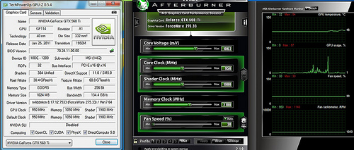 „GTX560TI Hawk“ galima bandyti pačiam spartinti daugiau. Man pavyko pasiekti 1100/2200 MHz stabilius dažnius, bent 20 MHz daugiau, ir žaidimai tiesiog nulūždavo po minutės ar kitos, plokštės nustatymai grįždavo į standartinius 950/2100. Taigi pačiam net neverta vargti, nes pasiektas OC nesudarė net 5 %, o FPS pokytis žaidimuose buvo dar mažesnis. Galima drąsiai teigti, kad MSI gamintojai plokštę iš kart yra optimaliai nustatę veikti įmanoma didžiausia sparta. Jums net nereiks niekuo rūpintis, tiesiog nusiperkate ir džiaugiatės visais papildomais kadrais per sekundę žaidimuose iš spartinto GTX560 Ti varianto.