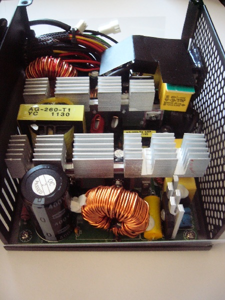 Pagrindinis kondensatorius yra pagamintas Taivano firmos „Teapo“. 400 V kondensatoriaus elektrinė talpa yra 330 μF. Kondensatorius „atlaiko“ maksimalią 85 °C temperatūrą. Tai nėra pakankamai daug, nes iš aukštesniosios klasės gaminių galime tikėtis sklandaus darbo esant ne aukštesnei nei 105 laipsnių temperatūrai. Bloke randame įmontuotą vieną didesnį bei vieną mažesnį transformatorius.