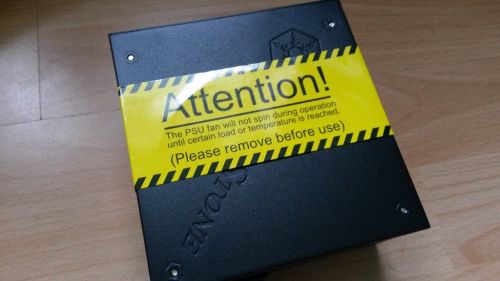 Ant PSU gamintojai dar sugalvojo uždėti perspėjantį užrašą: „Dėmesio, PSU ventiliatorius nesisuks kol nebus pasiekta tam tikra apkrova ar temperatūra“. Prisipažinsiu, aš garsiai prunkštelėjau perskaitęs. Negana buvo reklamos ant dėžutės ir vartotojo vadove, būtinai reikėjo dar uždėti didžiulį ir ryškų užrašą lyg tai būtų pavojingiausias dalykas pasaulyje. Nors savo darbą ir atliko – dėmesį atkreipė. Bet tiek to, judu toliau.