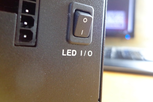 Jeigu vis dėl to manote, kad tai yra negražu apšvietimą visada galite išjungti. Tiksliau ne visada, o tik nuėmę kompiuterio korpuso šoną. Nes „Antec“ kažkodėl nepanoro jungiklio iškelti į išorėje liekančią dalį.