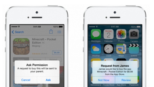 Siekiant apsisaugoti nuo netyčinių ar neapgalvotų pirkinių, kuriuos atlieka šeimoje esantys vaikai, suaugęs šeimos narys-administratorius gali aktyvuoti „Ask To Buy“ funkciją, kuri leidžia bet kuriam nesuaugusiam šeimos nariui prašyti leidimo įsigyti vieną ar kitą dalyką. Tokiu atveju prašymas yra siunčiamas šeimos administratoriui, kuris gali peržiūrėti planuojamą įsigyti turinį, jį atmesti arba patvirtinti.