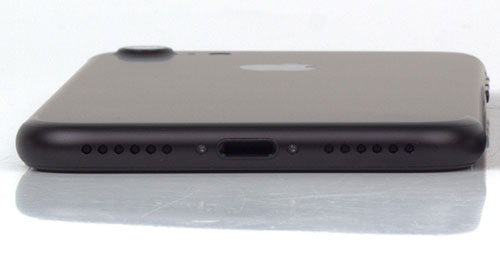 Nebėra ir tarp garso mygtukų blizgančio įdubimo. Visi mygtukai jaučiausi šiek tiek kietesni nei „iPhone 6“ ir spaudžiant skleidžia duslesnį garsą. „Lightning“ jungties rėmelis ir varžtų galvutės aplink ją juodos spalvos modeliuose taip pat nudažytos juodai. Apačioje esančios garsiakalbių angos yra visiškai simetriškos, o įgyvendinti tai leido 3,5 mm lizdo atsisakymas.