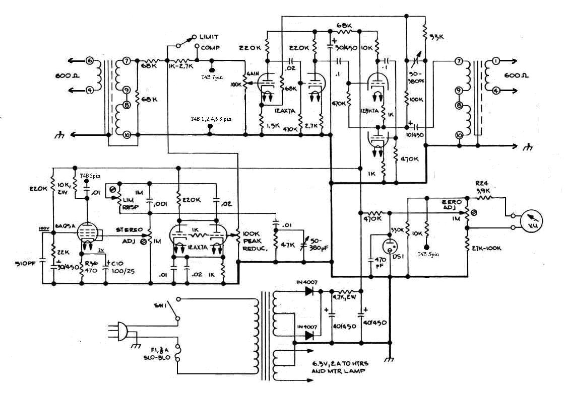 Pavyko internete rasti ir įtampas anoduose (6 koja): 12ax7#1 – 100v, 12bh7 – 200v, 12ax7#2 90v, 6aq5 – 80v. su 20 % paklaida. Patikrinus, kad telpu į rėmus, užsukau dangtį. Be stiprinimo reguliavimo (nes neturiu EL90 lempos) dinaminis diapazonas mažumėlę pasirodė siaurokas. Pirminės kaskados greitai pereina į iškraipymų režimą. EL90 vietoje laikinai prilitavus rusišką 6p1p (tokios pat charakteristikos, bet kita cokoluotė) viskas susitvarkė. Prietaisas pats „sugaudo“ kada įėjimas per stiprus ir jį slopina. Nepaisant to, žvėriškas mano pirminio stiprintuvo išėjimas kartais perkrauna net įėjimo transformatorių. Tam spręsti išmėginau Enrique Iglesias variantą – 1176 ir LA2A nuosekliai: