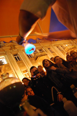 Didelius žmonių srautus pritraukė viešose, mokslui neįprastose miesto erdvėse vykę renginiai. Vienas iš tokių – senamiestyje esantis Vilniaus kino teatras „Pasaka“, kuriame buvo surengta diskusija apie mokslininko darbo prigimtį, motyvaciją ir žmonijai nešamą naudą. Gretimoje salėje iki vidurnakčio vyko mokslo fantastikos filmų peržiūros: 1902 metų filmas „Kelionė į mėnulį“, 1931 metų „Frankenšteinas“ bei 1927 m. „Metropolis“ pritraukė pilną kino salę.