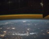 Žemės atmosfera iš Tarptautinės kosminės stoties. Oranžinio ir žalsvo švytėjimų riba yra maždaug 100 km aukštyje. Nuotrauka daryta 43 TKS ekspedicijos metu, 2015 metais. Šaltinis: Earth Science and Remote Sensing Unit, Lyndon B. Johnson Space Center – JSC Gateway to Astronaut Photography of Earth